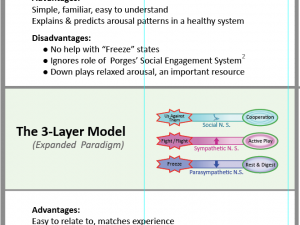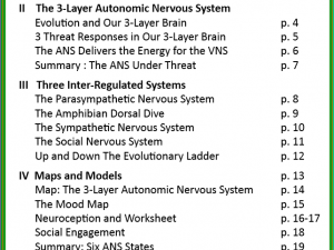 Book 3 orients the reader to the autonomic nervous system. The reciprocal model with two states (fight or flight vs. rest and digest) expands to the 3-Layer (Polyvagal) model with six states. Peter Levine’s clinical work and teaching, combined with Stephen Porges research have given us desperately needed tools. This map gives us landmarks to navigate by, pathways to move along and an overview to notice what is sturdy and what is missing. It encourages us toward our very real cooperative, resilient potential. This model is